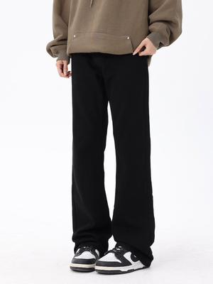 ZLAYCO 美式高街黑色牛仔裤男女vibe百搭直筒基础微喇显瘦长裤子