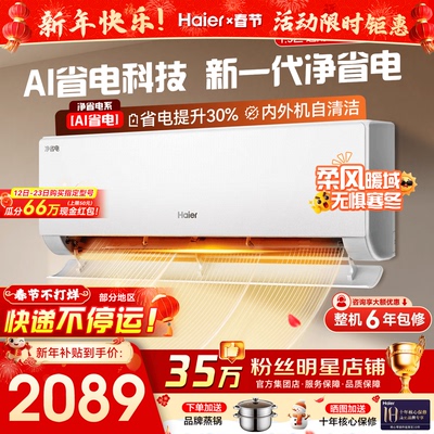 【纯铜管】海尔空调1.5匹1匹家用一级变频冷暖挂机净省电E1旗舰店