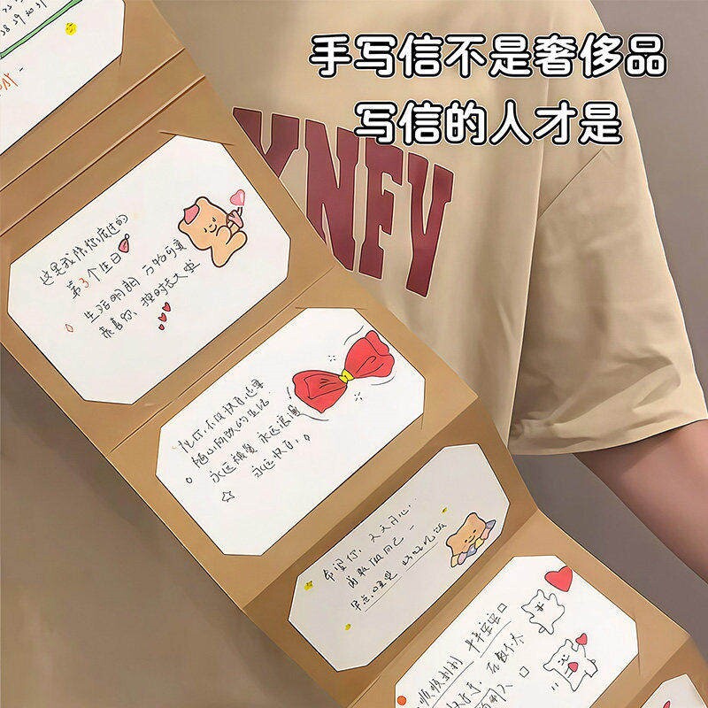 DIY手工风琴本贺卡册抽拉式贺卡材料包送情侣七夕情人节创意礼物
