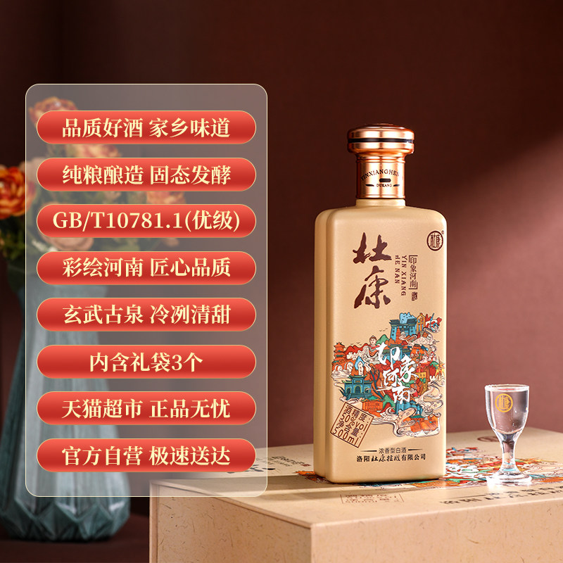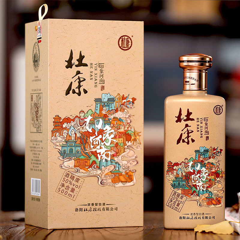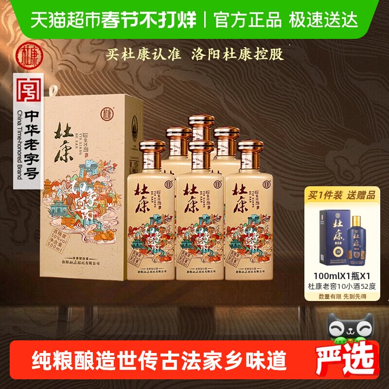 杜康印象河南浓香白酒纯粮口粮自饮酒水50度500ml*6瓶整箱含礼袋