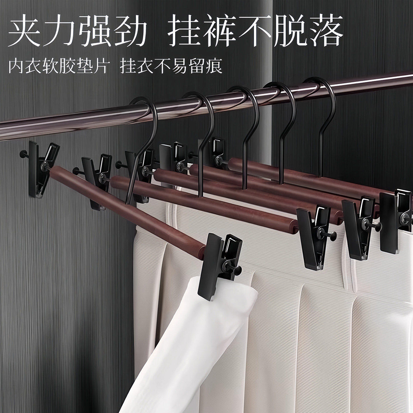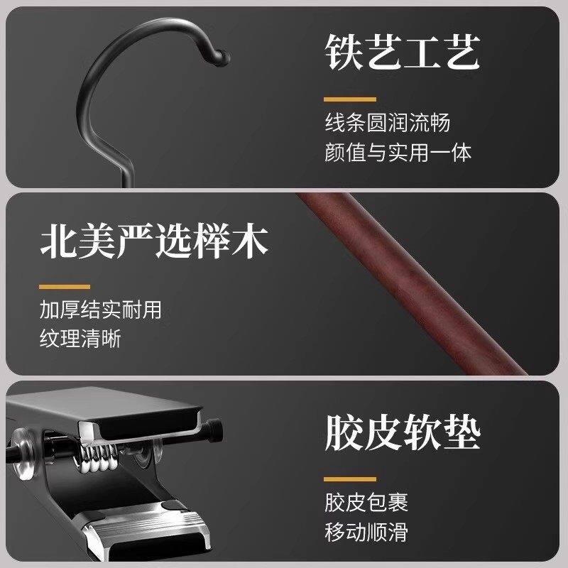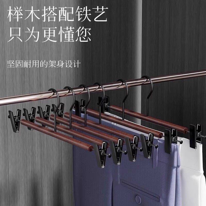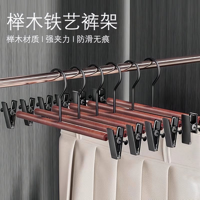 轻奢榉木铁艺实木裤夹裤架木质裤夹子家用无痕强力夹裤子专用衣架