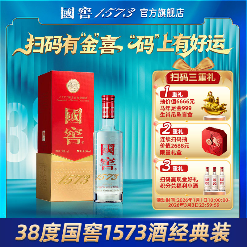 国窖1573 38度500ml浓香型低度白酒酒水 官方自营 请客过节送礼