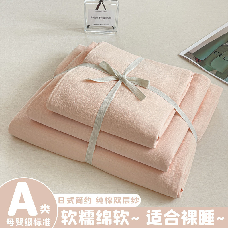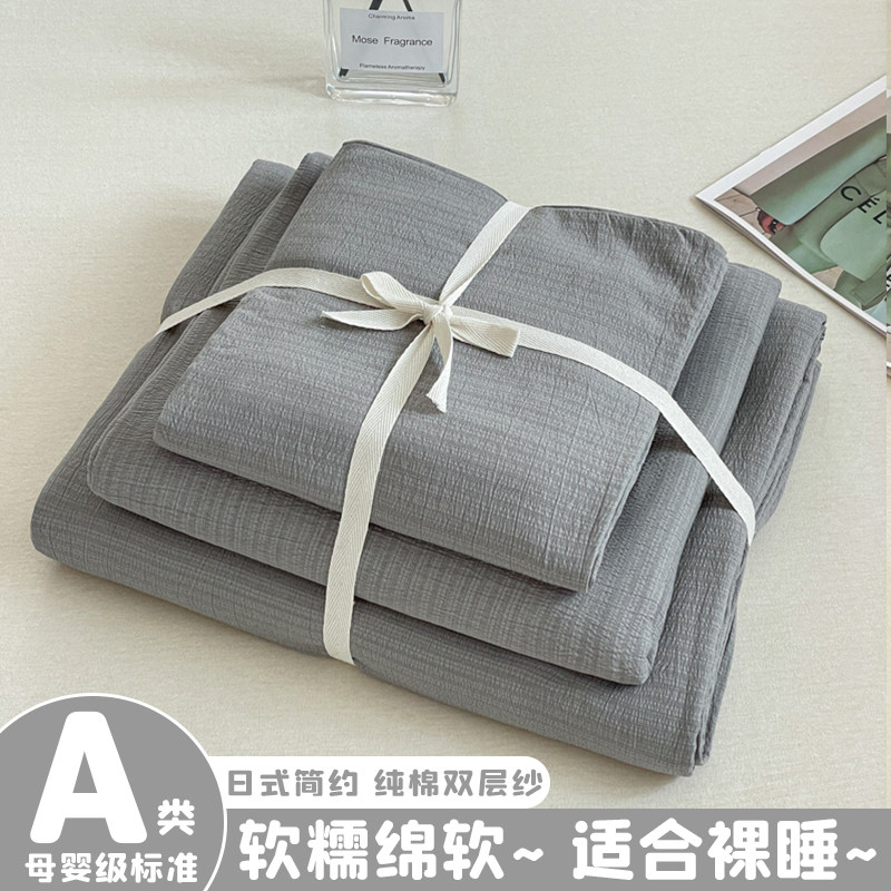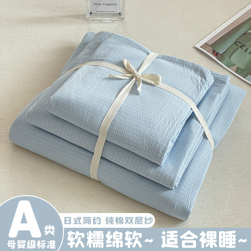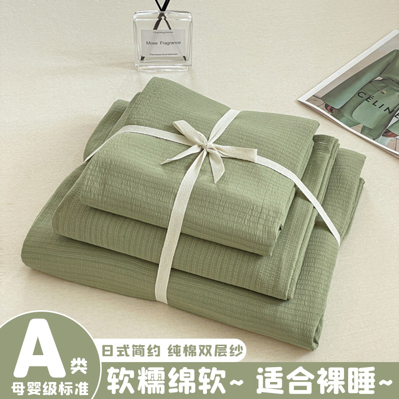 日式侘寂风床上用品四件套纯棉全棉纯色床单被套大学生宿舍三件套