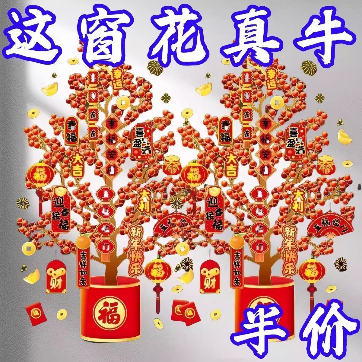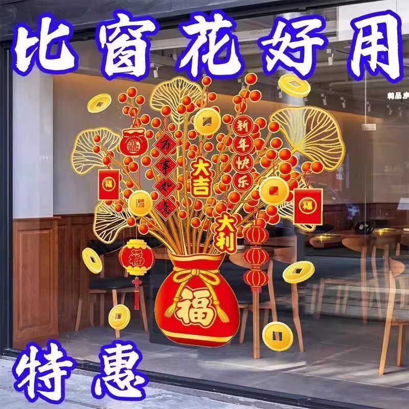 2026新年发财树装饰贴画马年春节年画静电贴玻璃窗花贴纸橱窗贴画