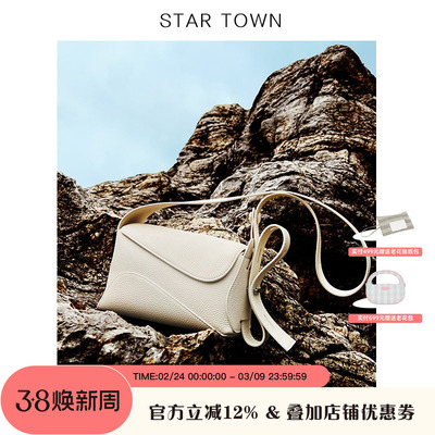 STARTOWN高级感头层牛皮单肩腋下小方包女2025新款百搭通勤斜挎包