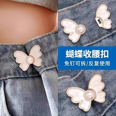 蝴蝶收腰扣子免打孔裤子裙子牛仔裤腰围改小固定神器珍珠收紧纽扣