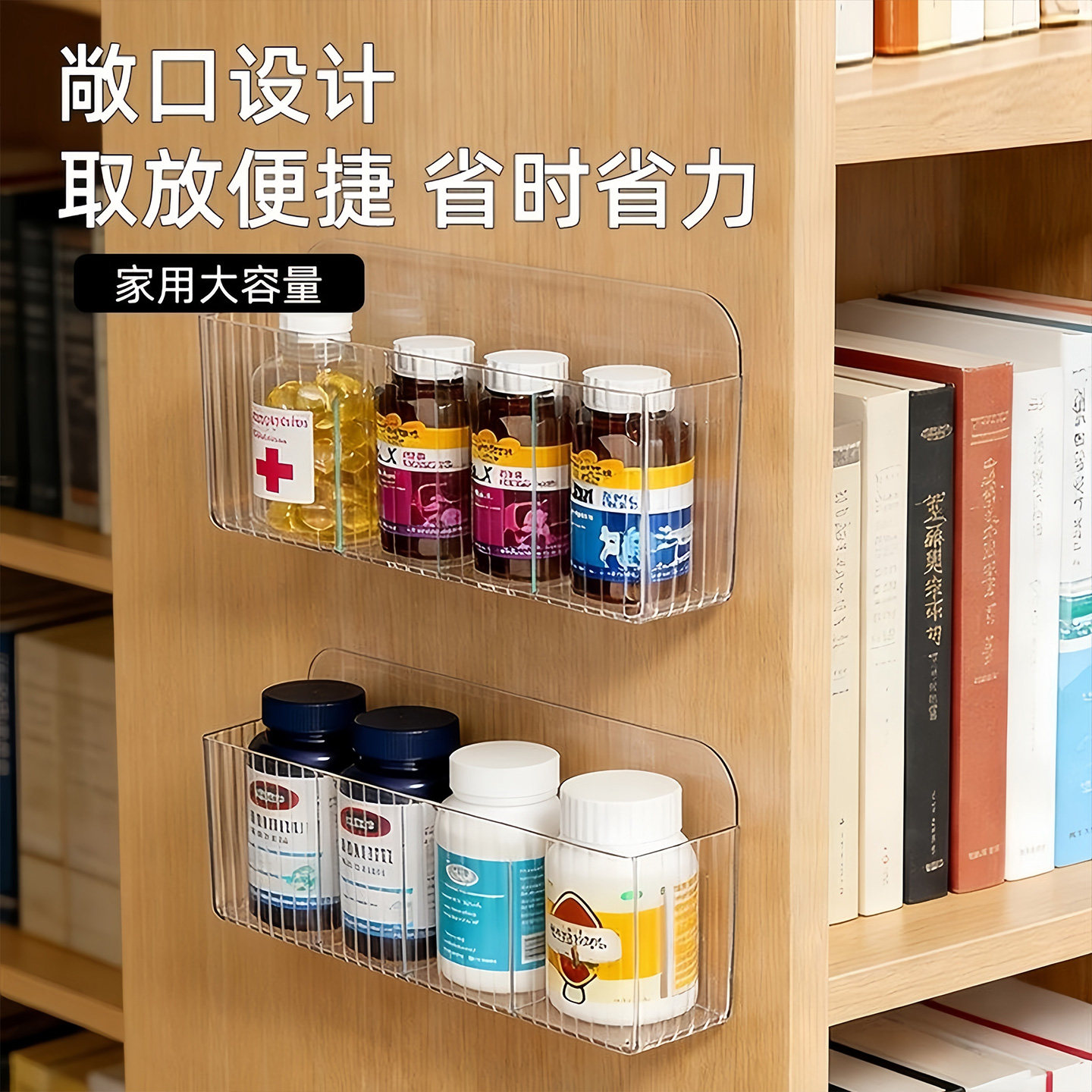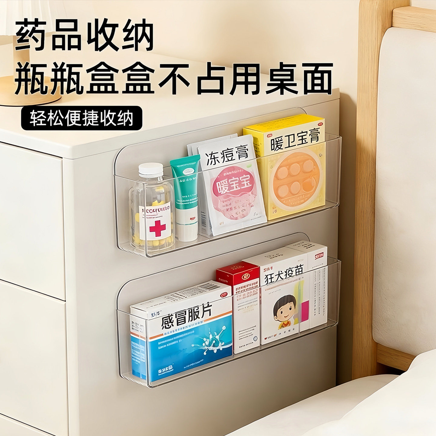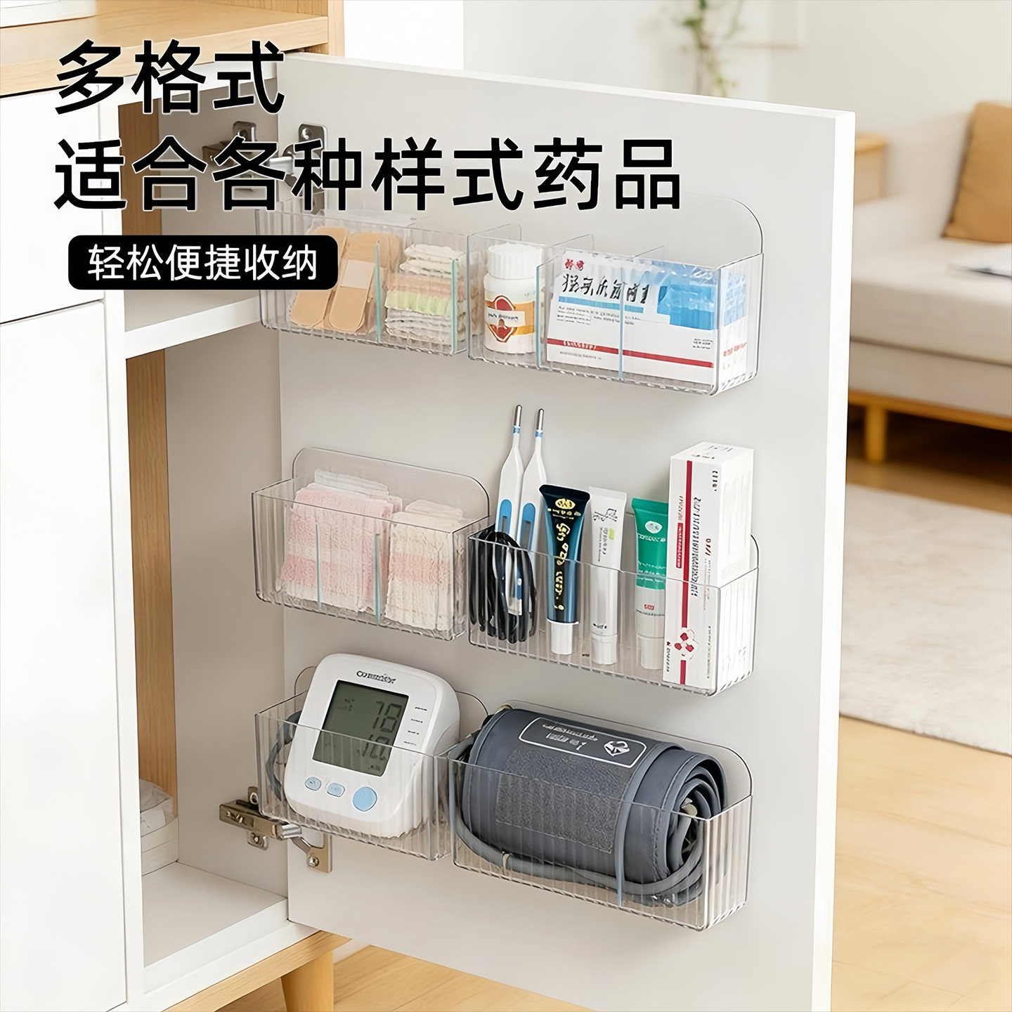 药品收纳盒柜门壁挂式免打孔透明多格家用常备急救药品置物箱