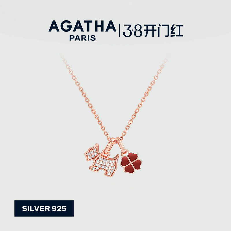 AGATHA/瑷嘉莎四叶草小狗项链高级感法式优雅锁骨链轻奢38礼物
