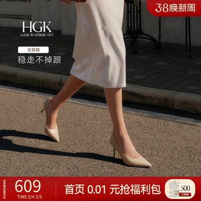 HGK花苞鞋 新款裸色法式静音高跟鞋羊皮高级气质绝美尖头通勤单鞋