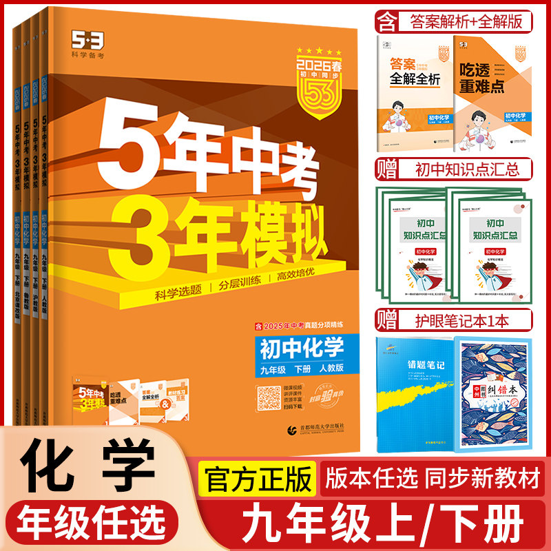 2025秋五年中考三年模拟九年级上册下册化学人教版沪教版鲁教版九年级同步练习册试卷5年中考3年模拟初中化学53初三教辅导资料