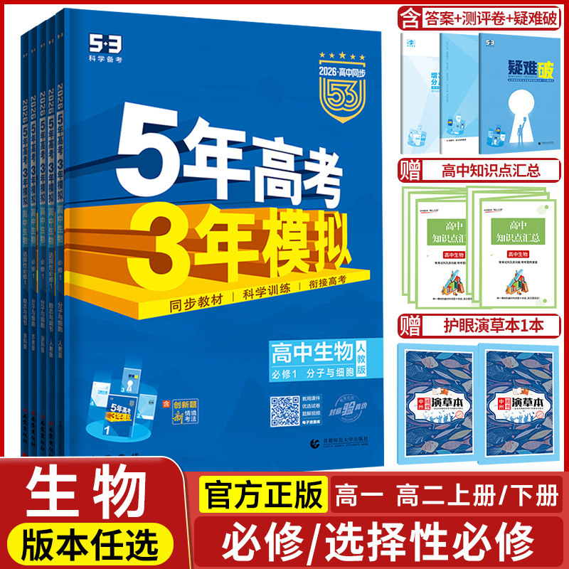 2026五年高考三年模拟高一生物必修1分子与细胞必修2遗传与进化选择性必修1、2.3人教版选择性必修第一二三册五三必修上下册