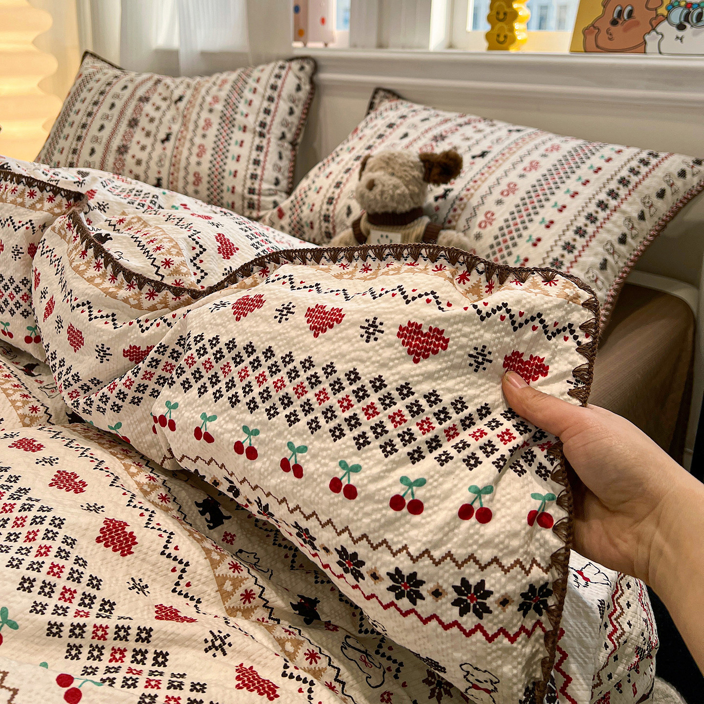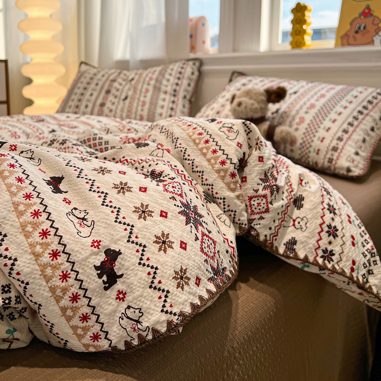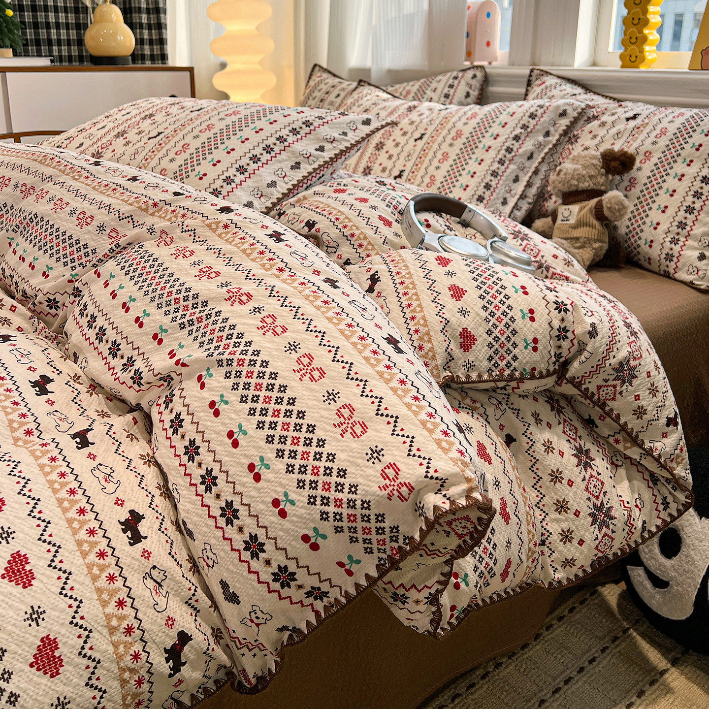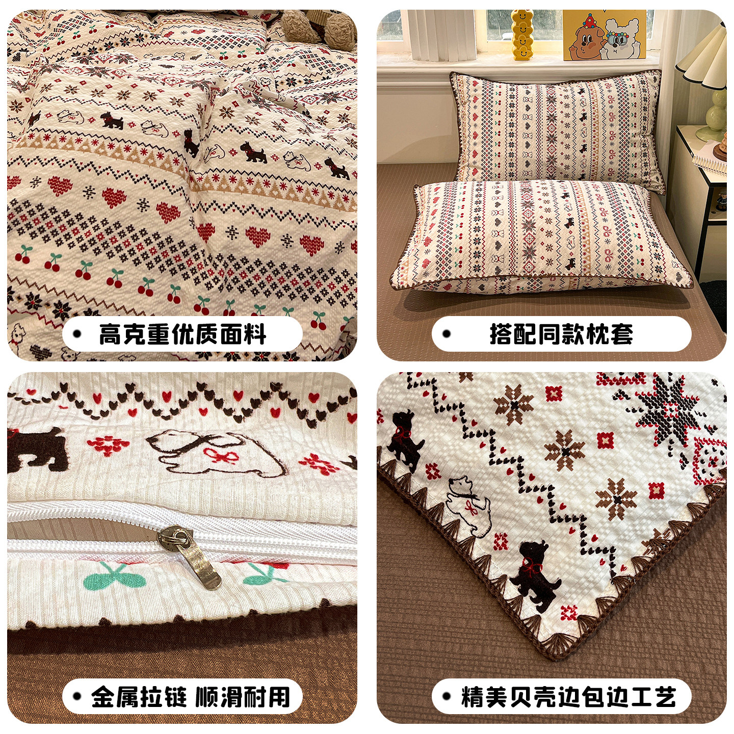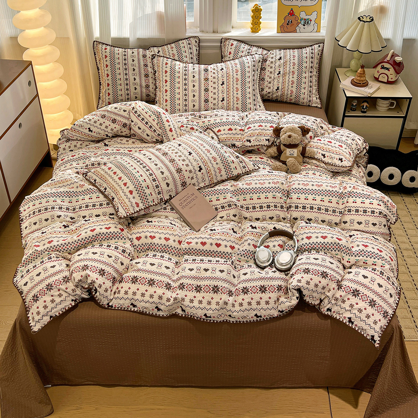 ins费尔岛风纯棉床上四件套全棉2026新款被套学生宿舍床单三件套4