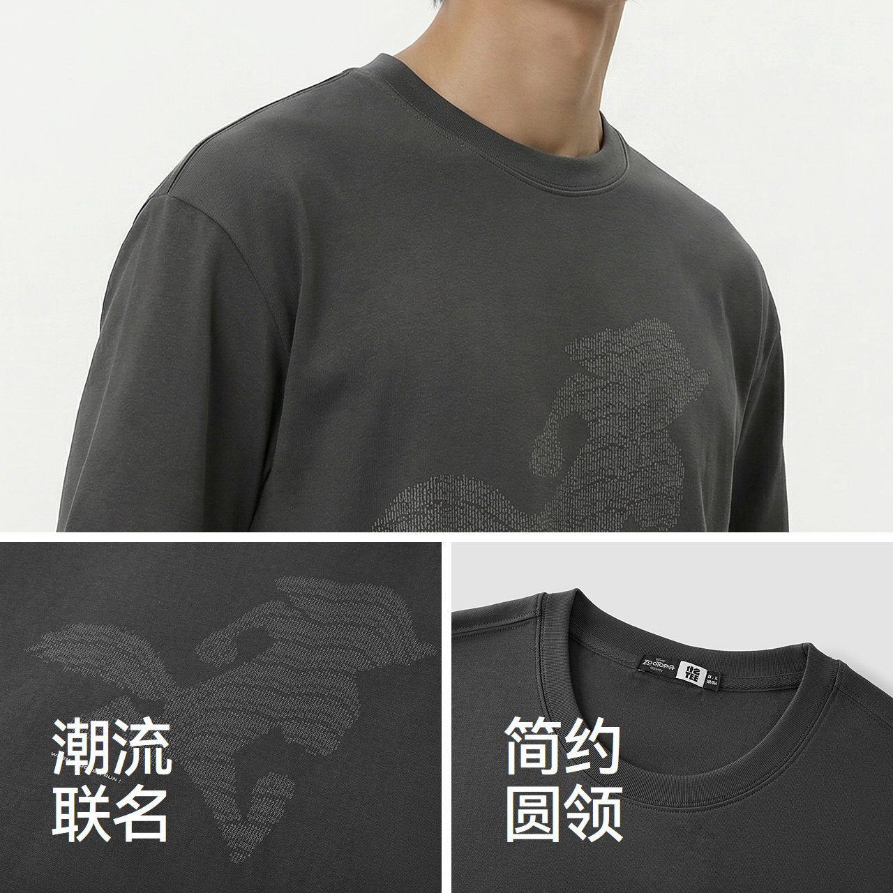纯棉短袖T恤 疯狂动物城联名 字母剪影轮廓