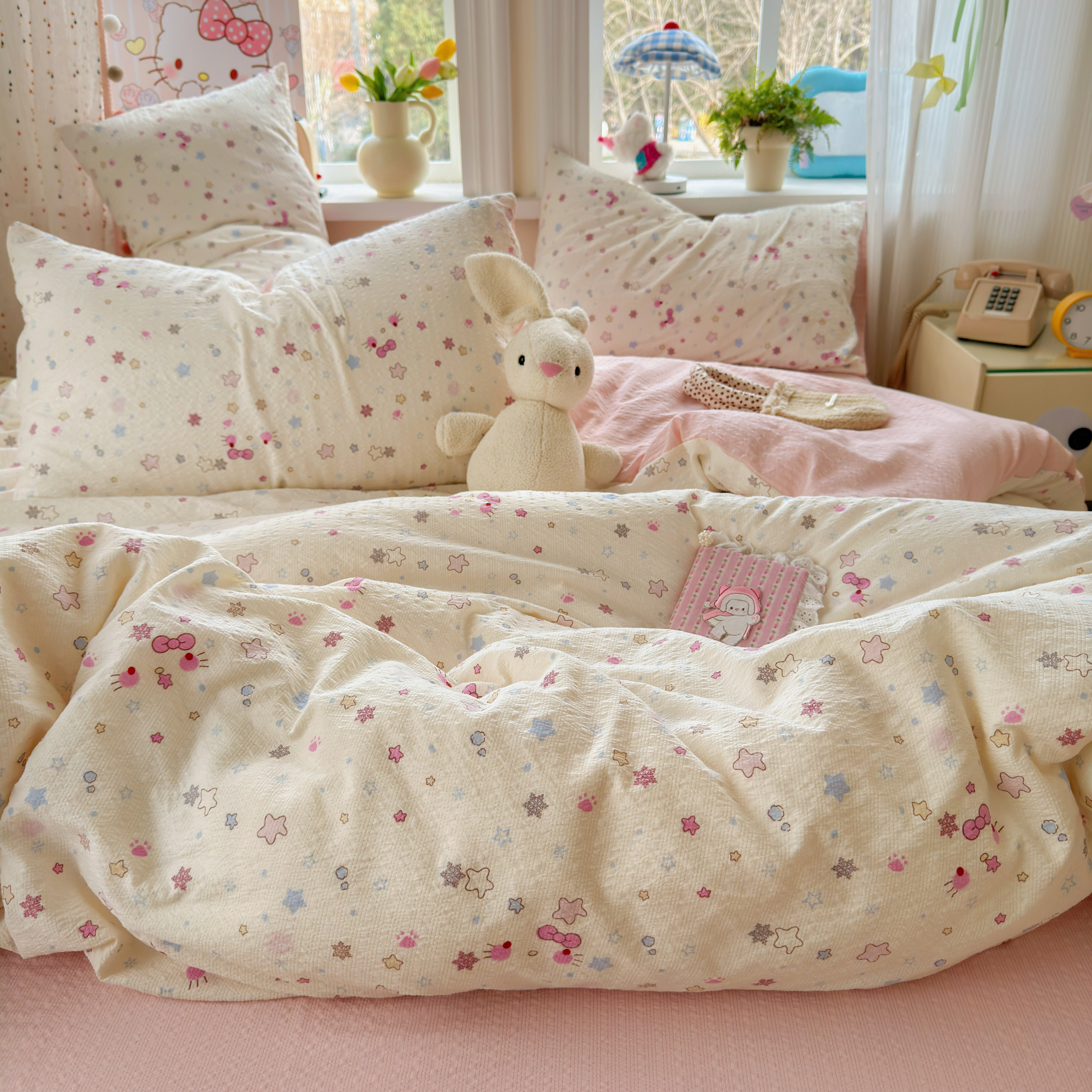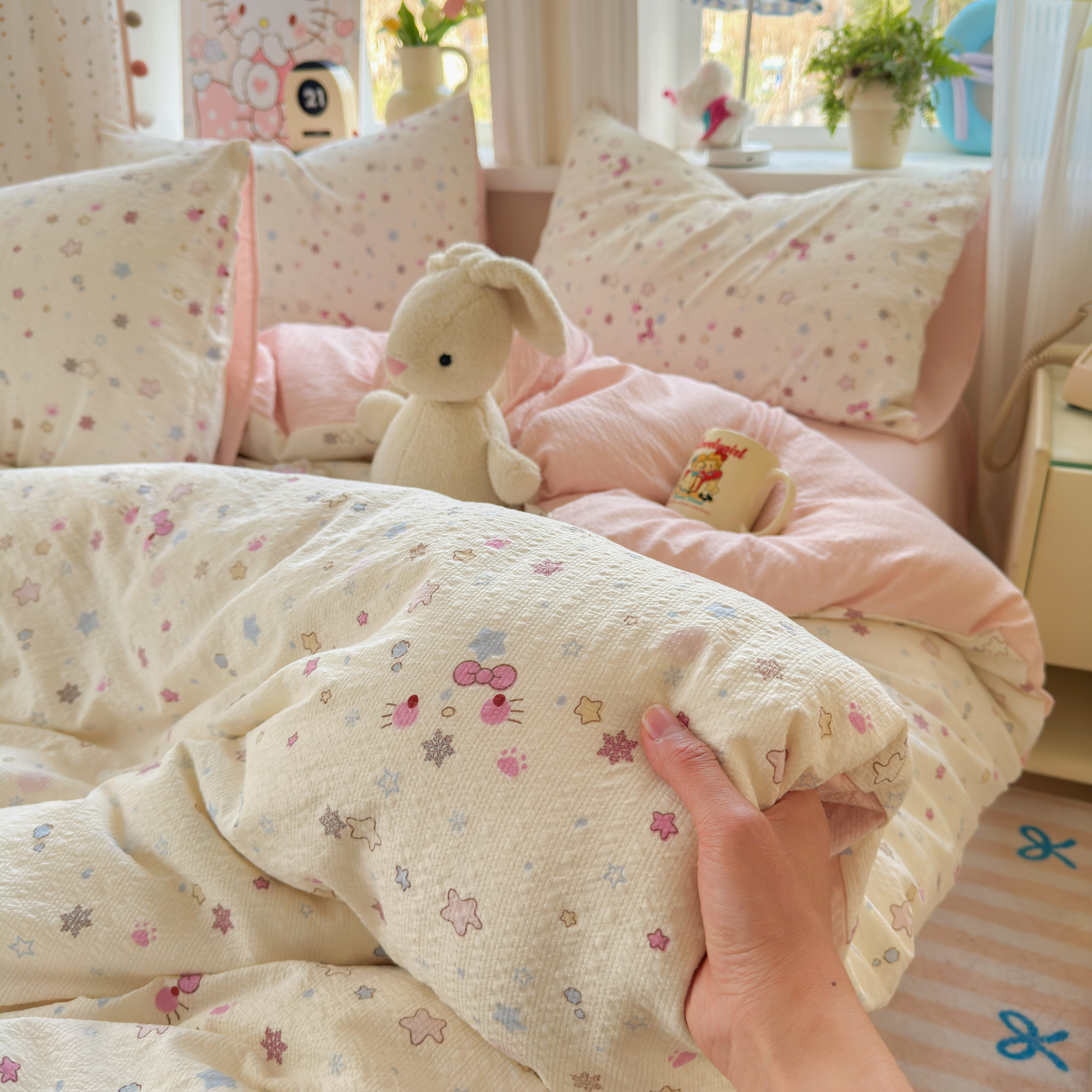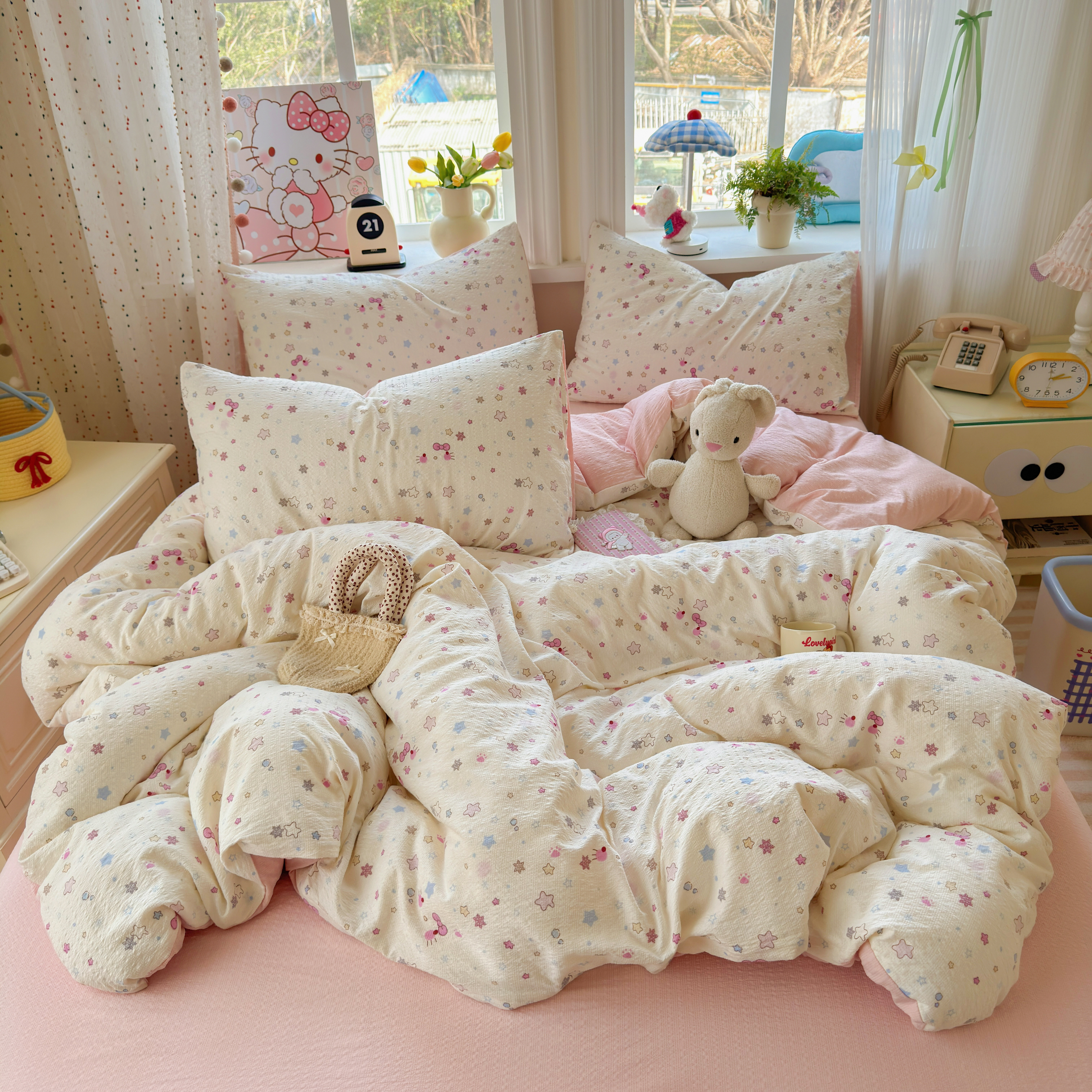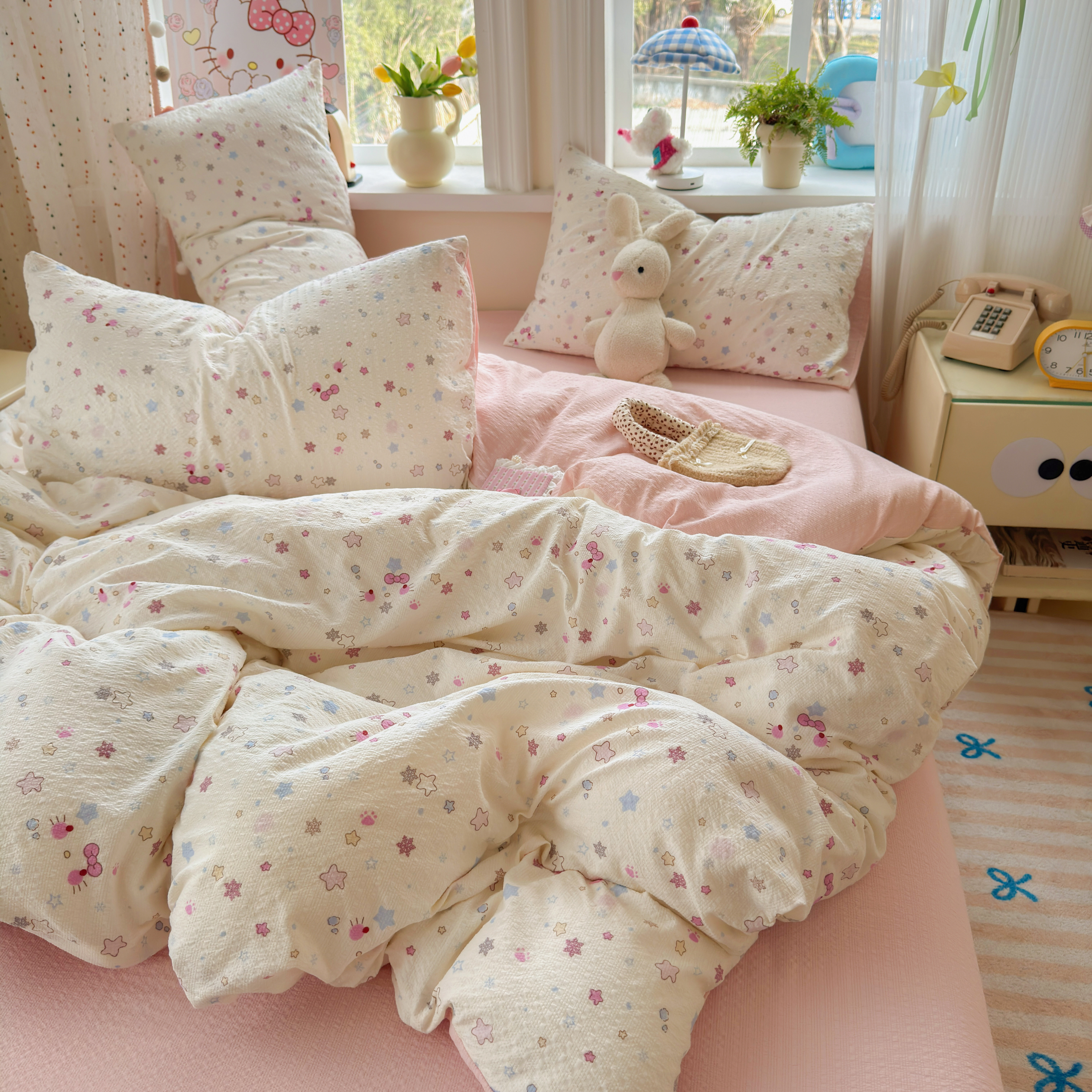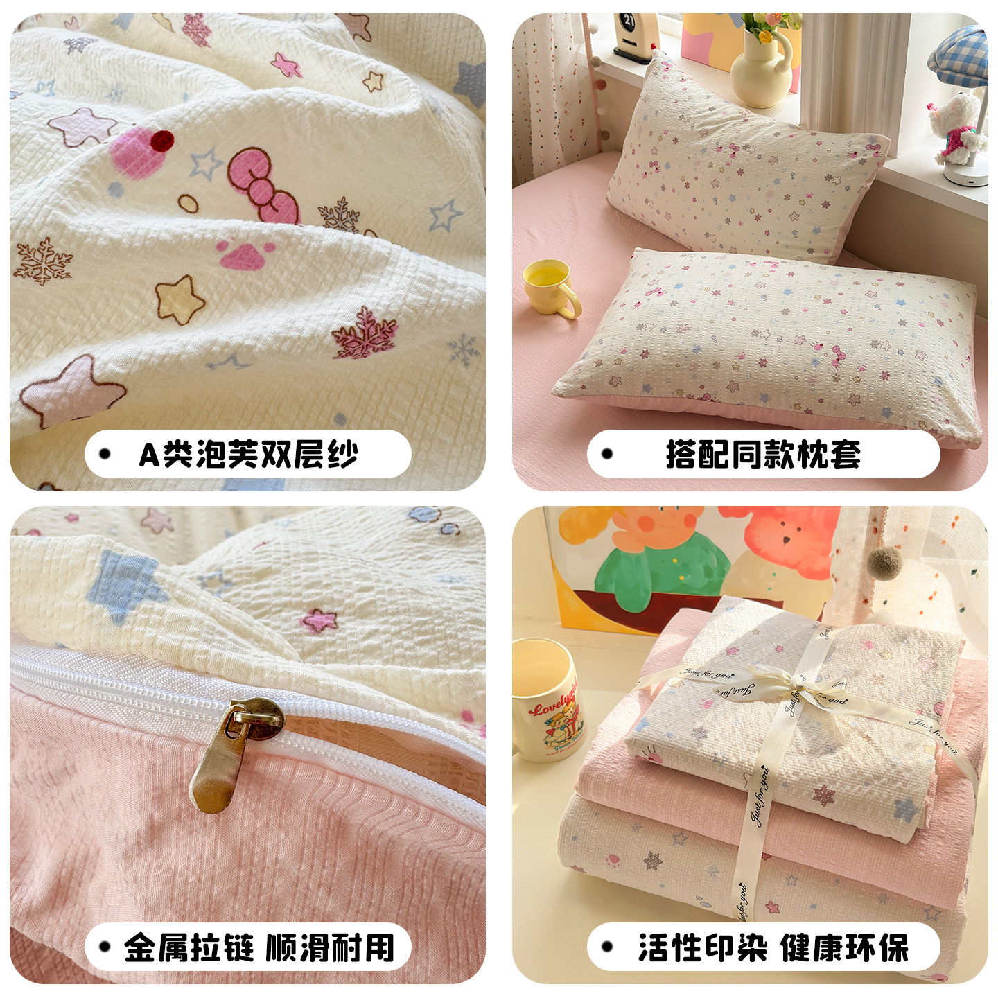 卡通KT猫床上四件套全棉纯棉双层纱床单被套罩学生宿舍三件套床笠