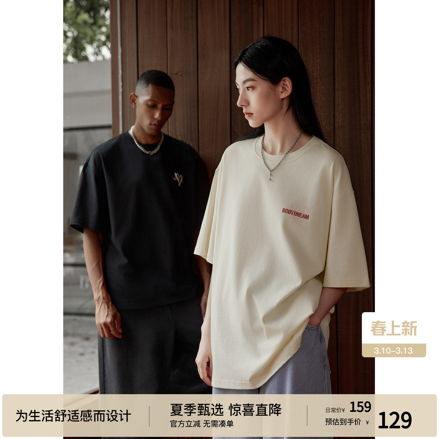 BODYDREAM情侣短袖男夏季t恤上衣纯棉重磅打底衫宽松落肩半袖衣服