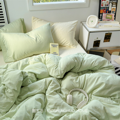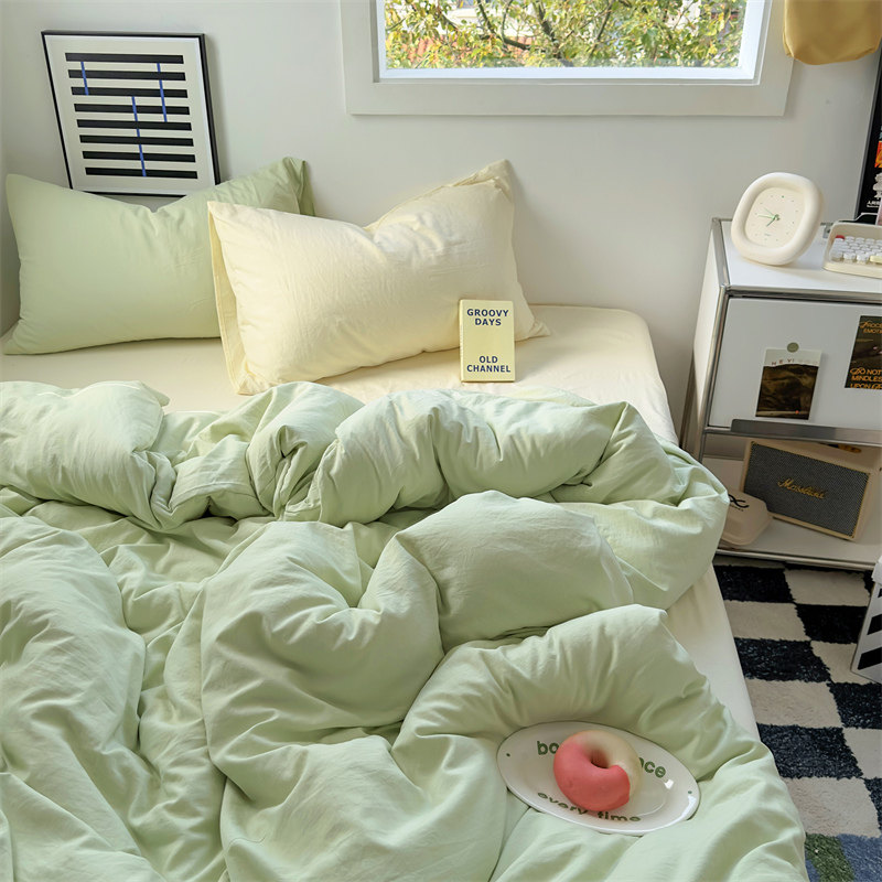 ins风小清新纯棉全棉四件套双拼床单被套床笠单人宿舍床上三件套4