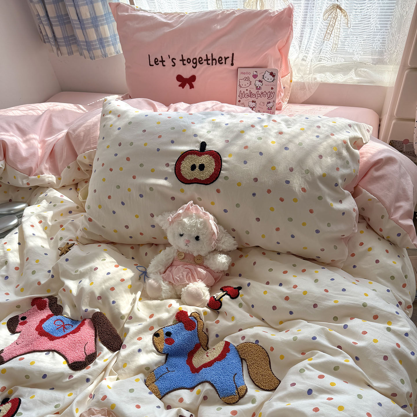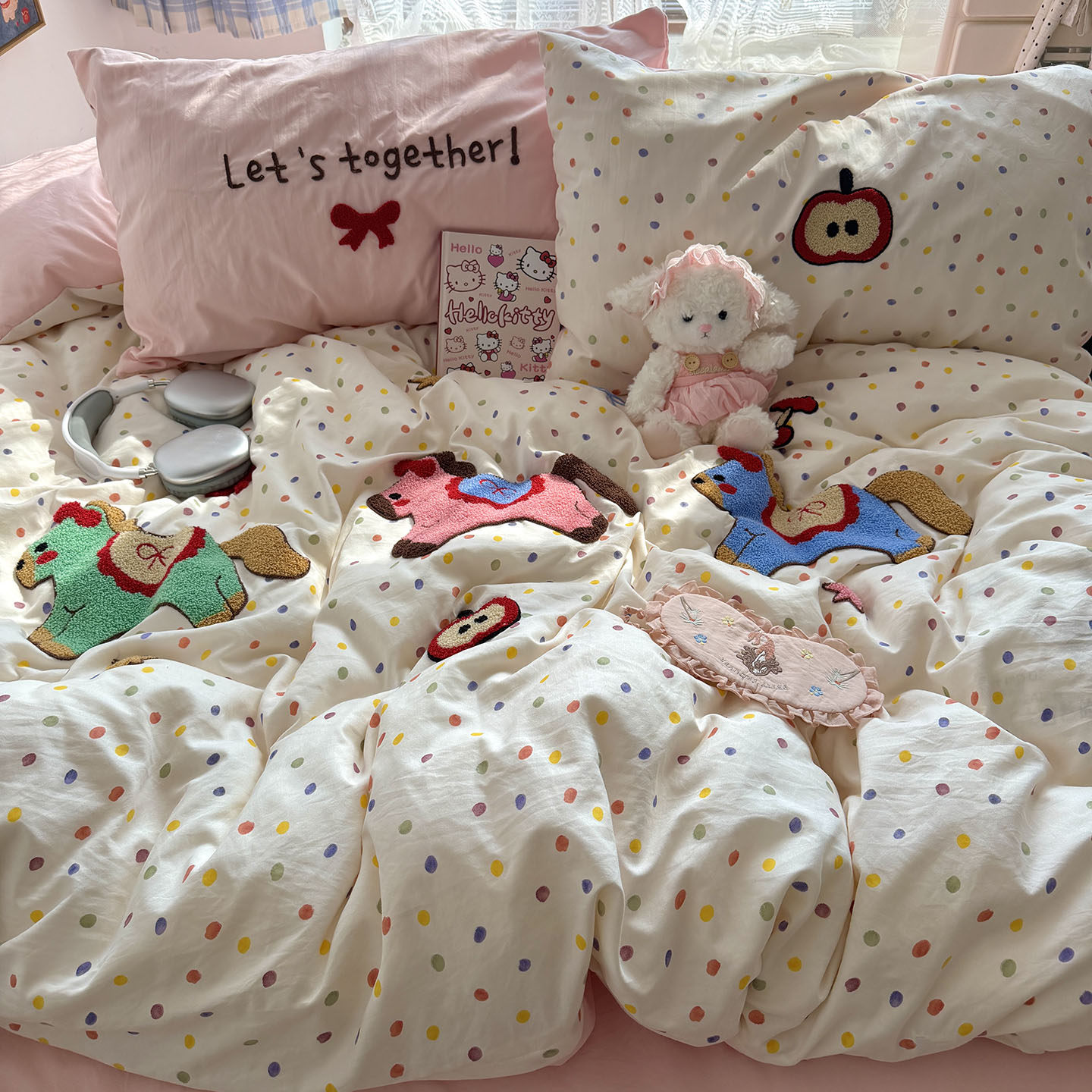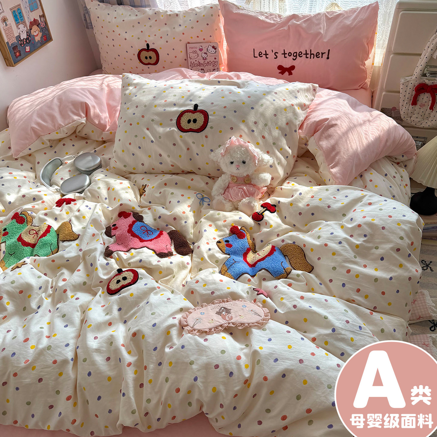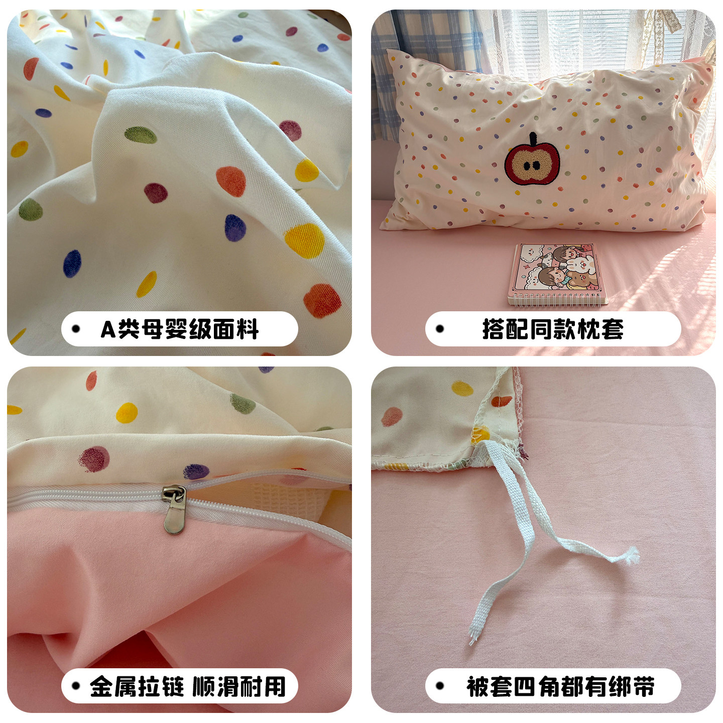 A类毛巾绣床上四件套纯棉全棉波点被套罩床笠学生宿舍床单三件套4