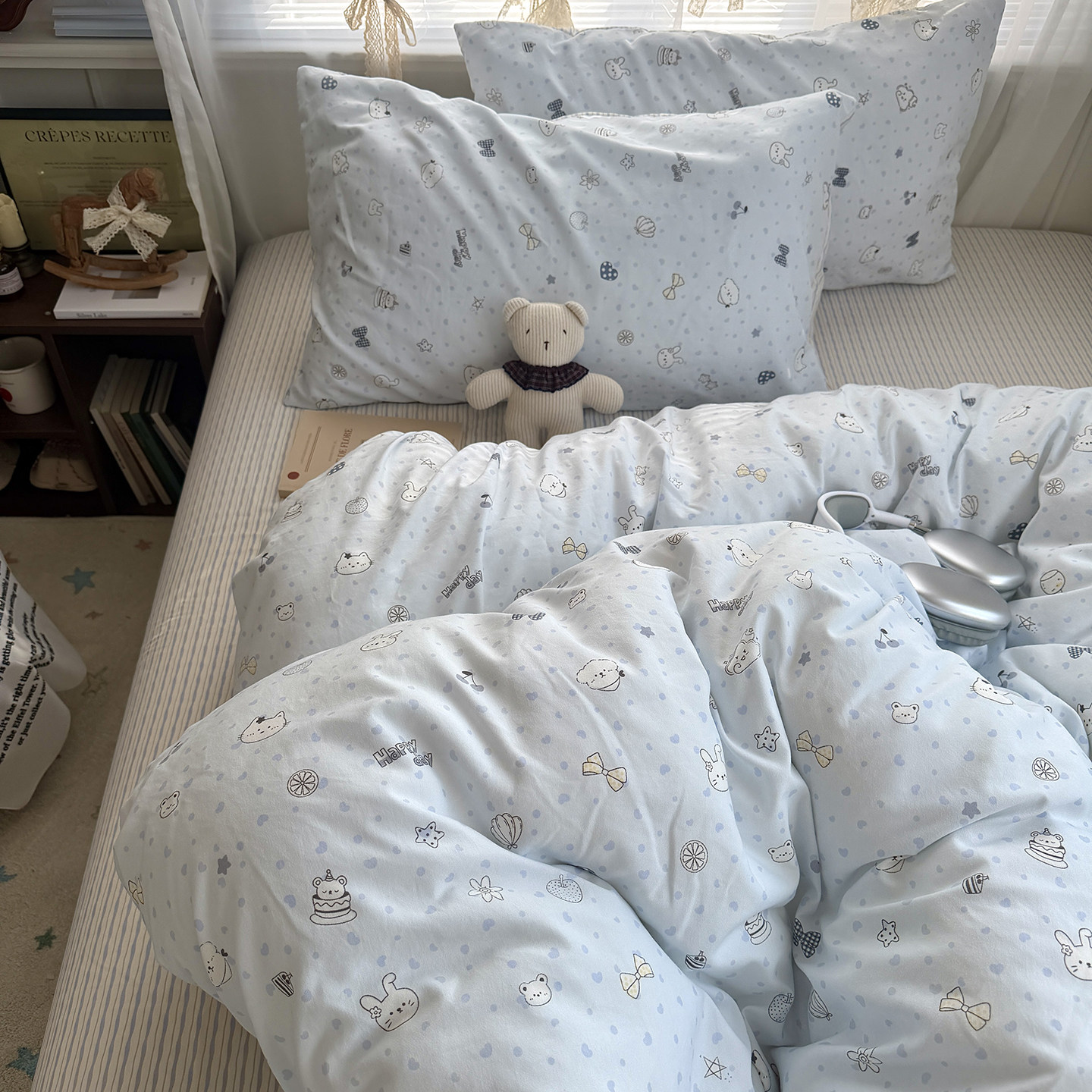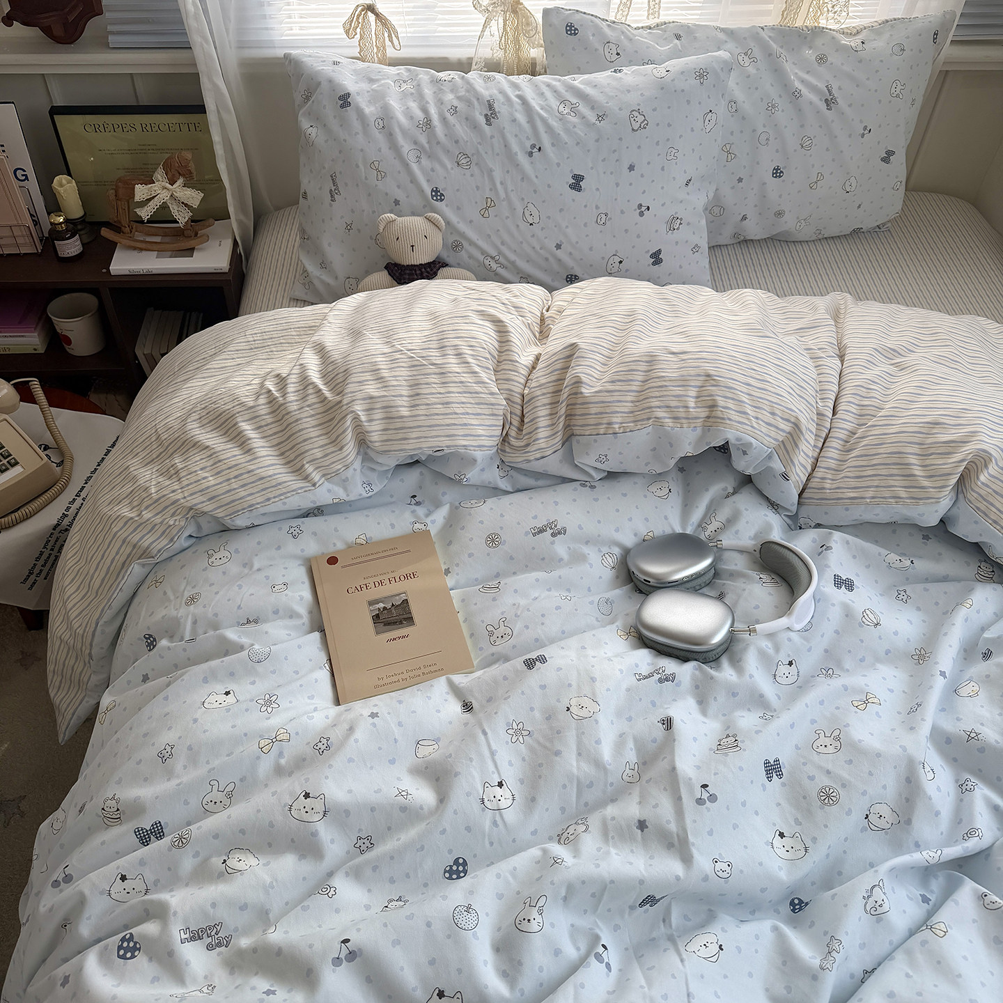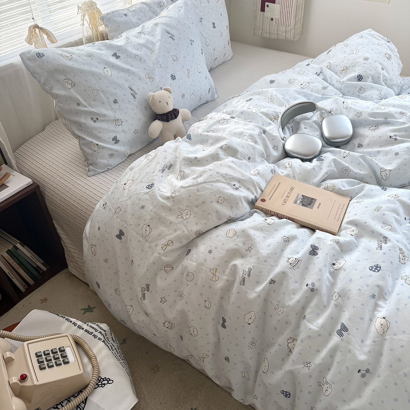 ins床品全棉四件套纯棉被套床单床笠被罩床笠新款学生宿舍三件套4