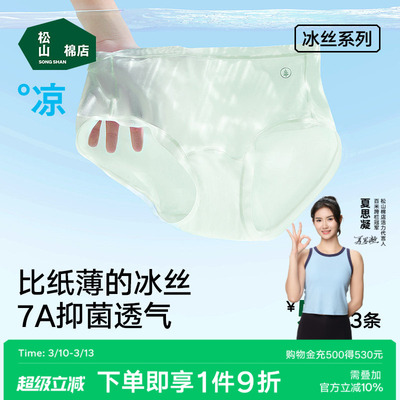 松山棉店小薄荷女士冰丝无痕内裤抗菌蚕丝加长底档三角裤透气薄款