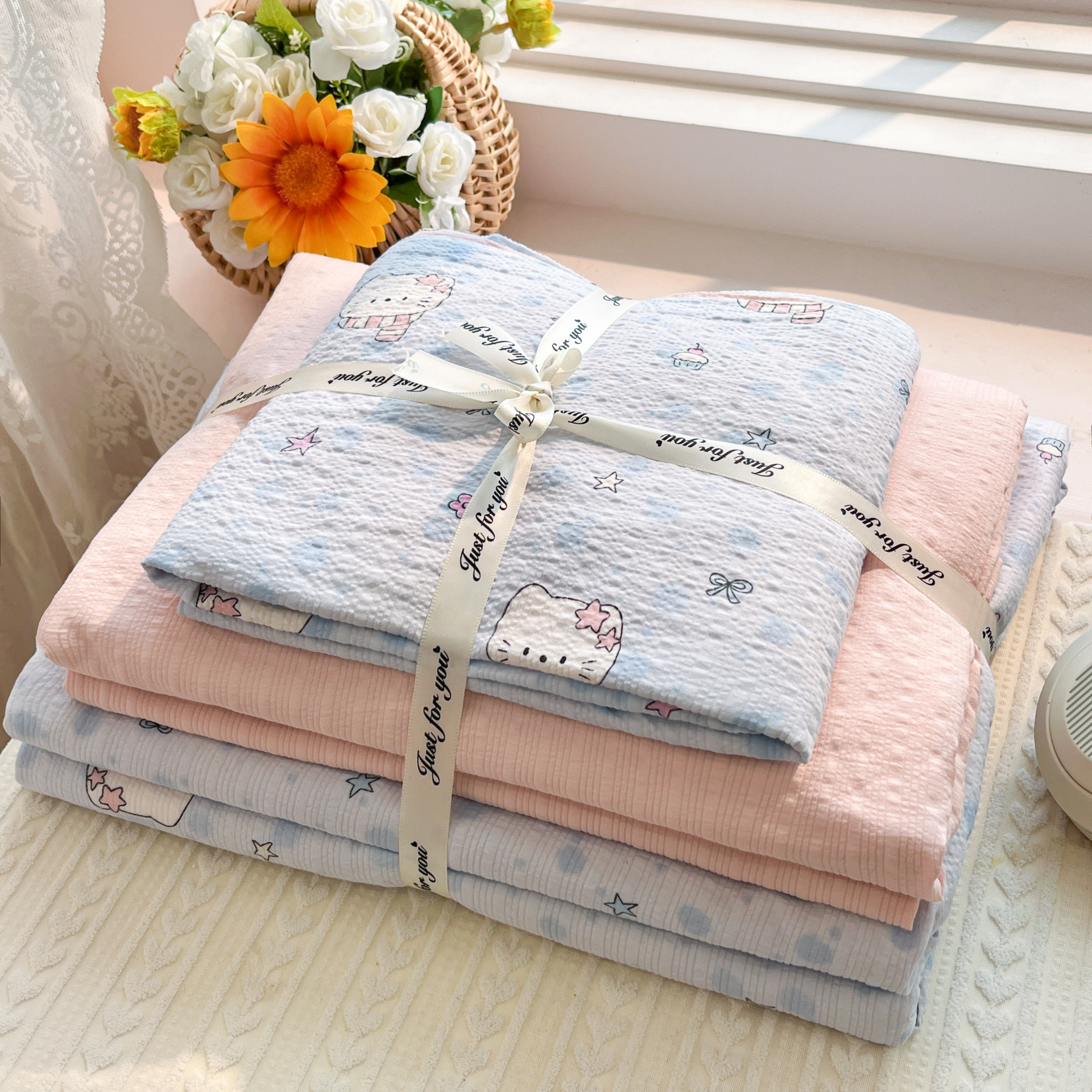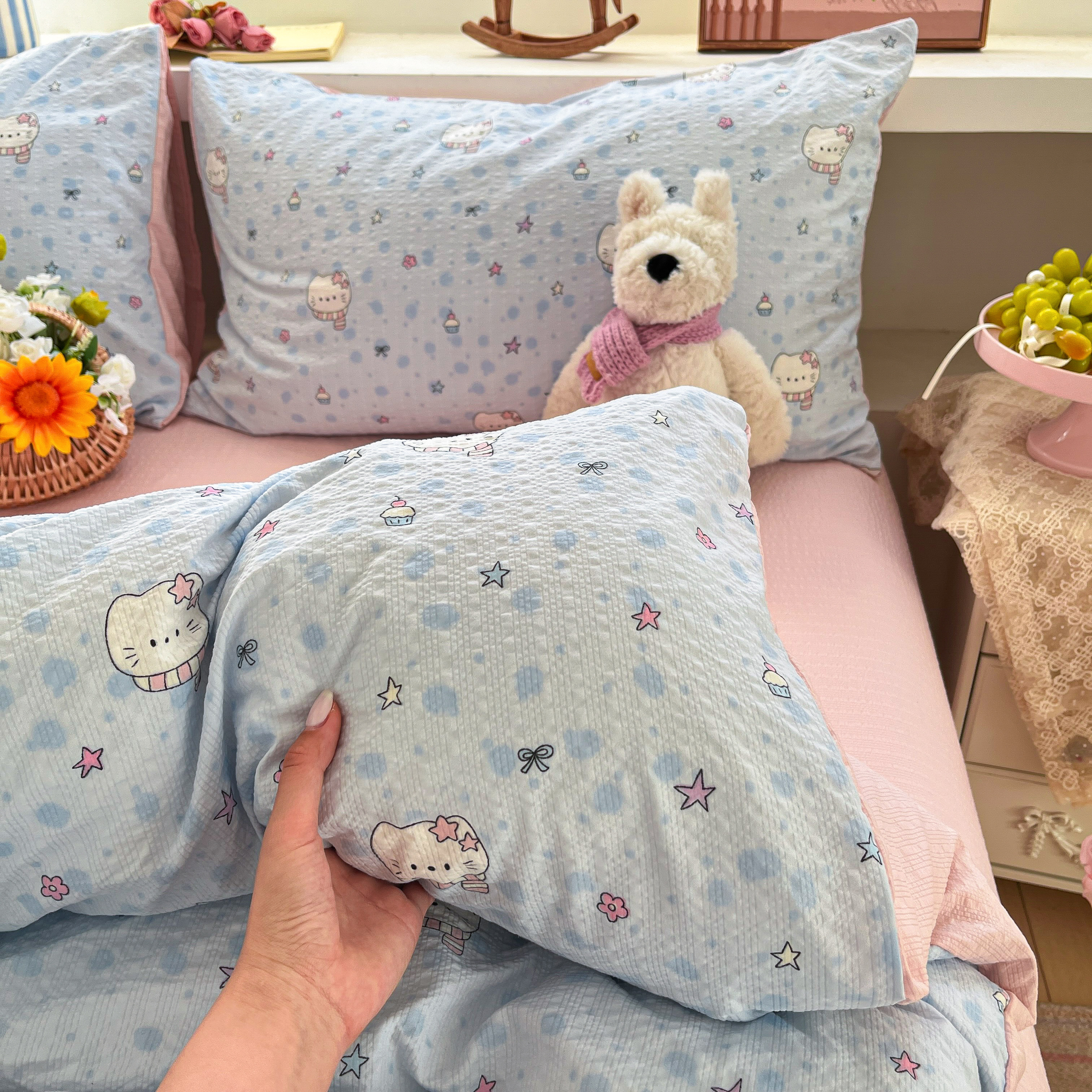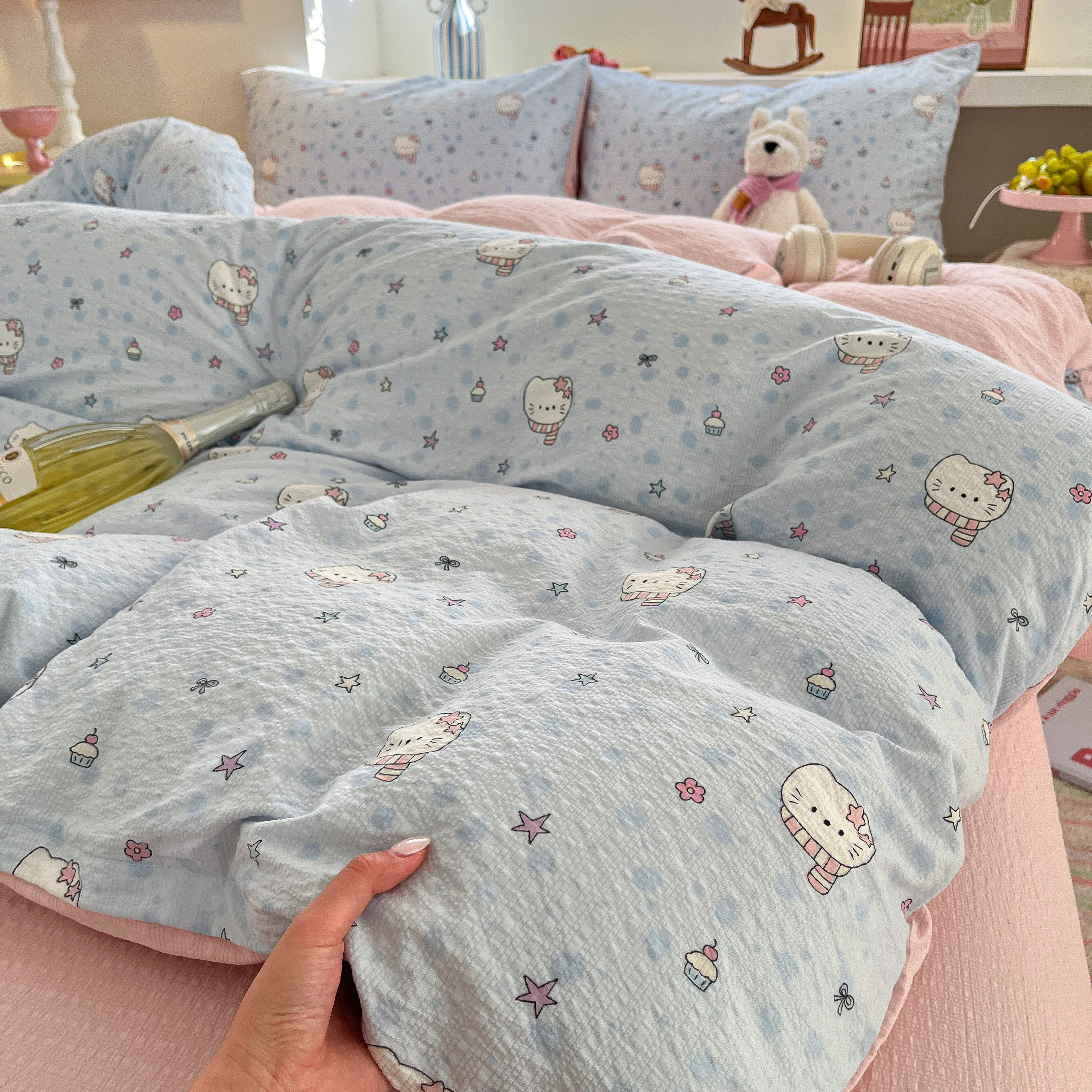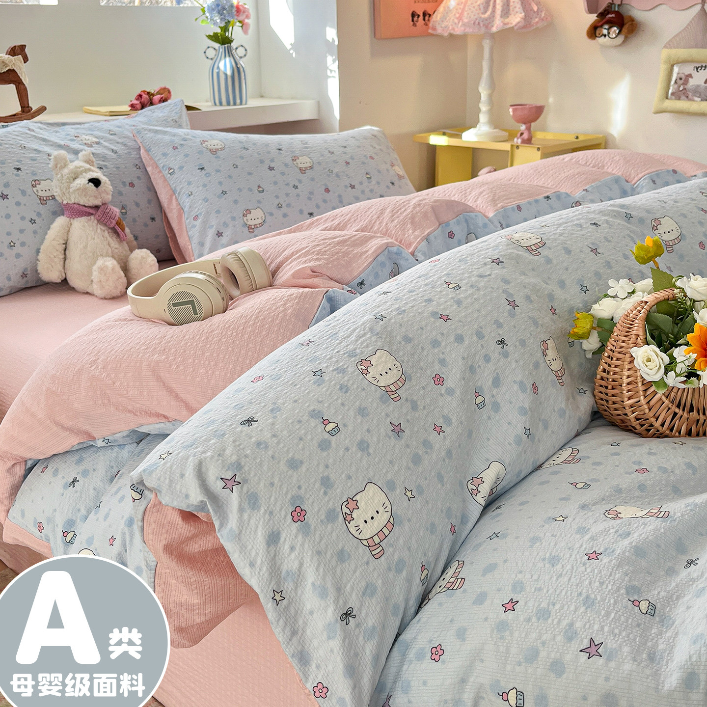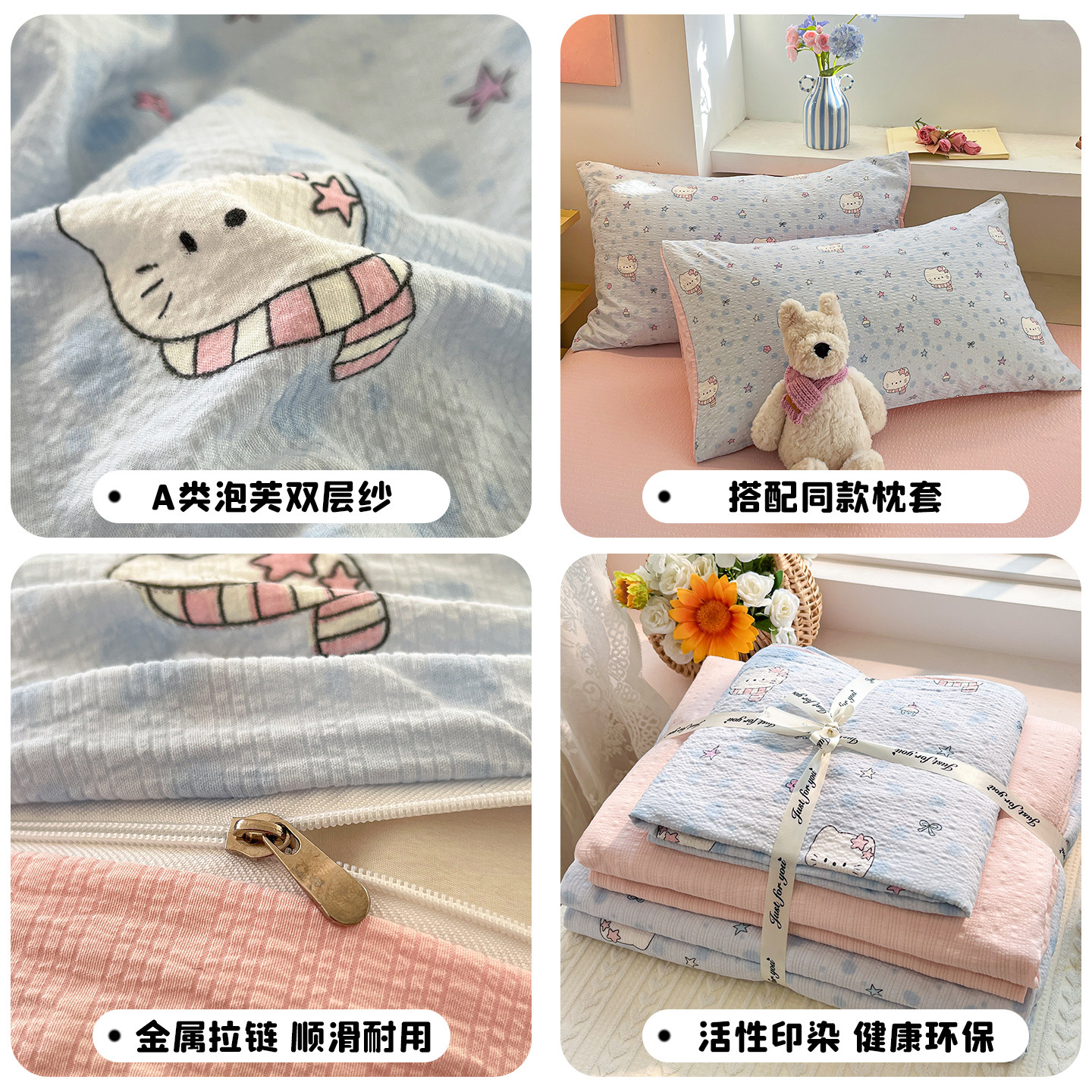 ins风少女kt猫咪双层纱全棉四件套纯棉被套床单学生宿舍三件套1.5