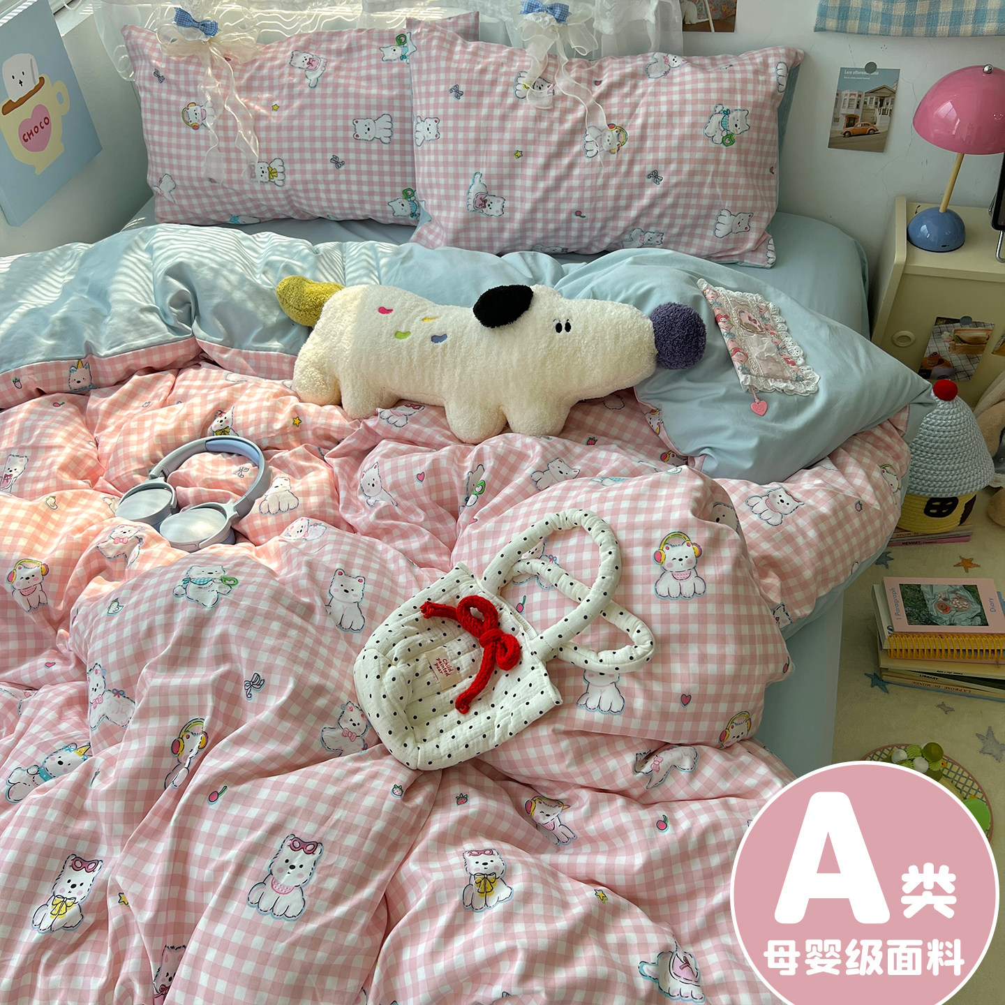 A类床上四件套全棉纯棉2025新款床单被套被罩床笠学生宿舍三件套4