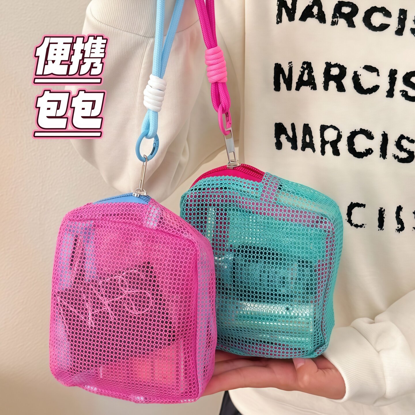 韩版彩色网纱豆腐包超轻网格杂物收纳小包户外多用途收纳包大容量