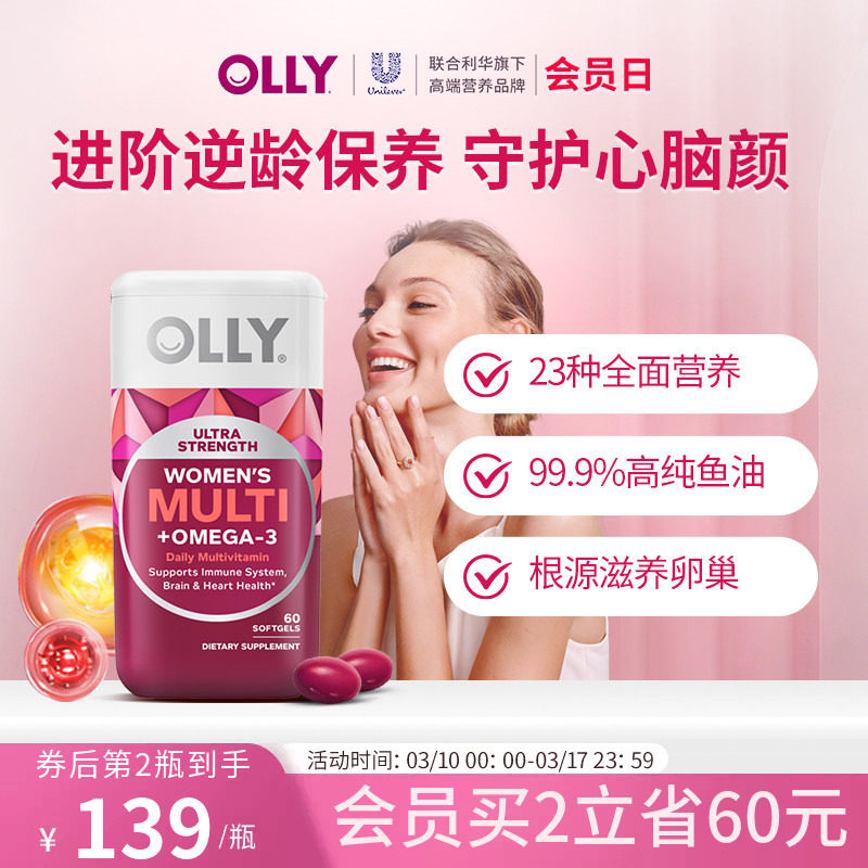 OLLY女士鱼油复合维生素omega3女性多维软胶囊生物素卵巢保养