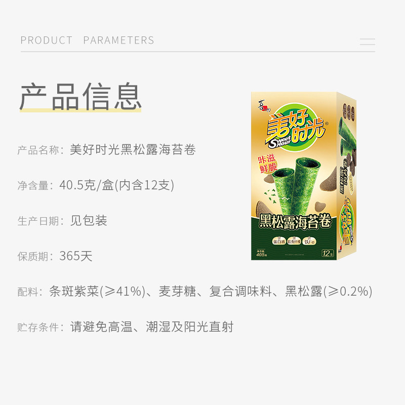 喜之郎美好时光黑松露海苔卷40.5克*1盒12支儿童零食酥脆紫菜即食