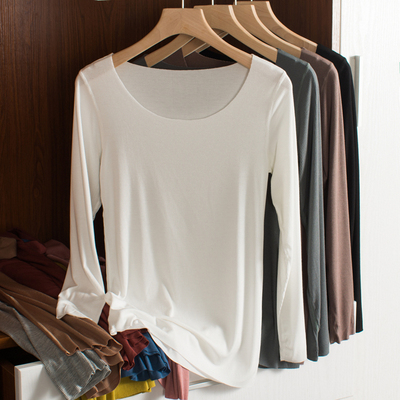 莫代尔圆领内搭T恤女无痕长袖打底衫薄款百搭纯色修身春秋上衣