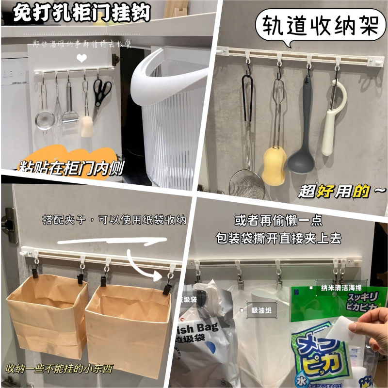 厨房收纳滑动轨道挂钩柜门收纳挂钩神器免打孔橱柜门后收纳置物架