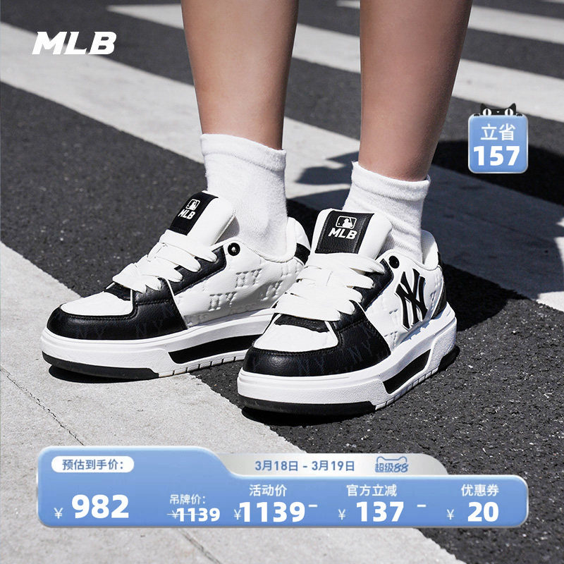 MLB官方 男女同款印刻老花厚底增高运动学长鞋板鞋春夏SXM07