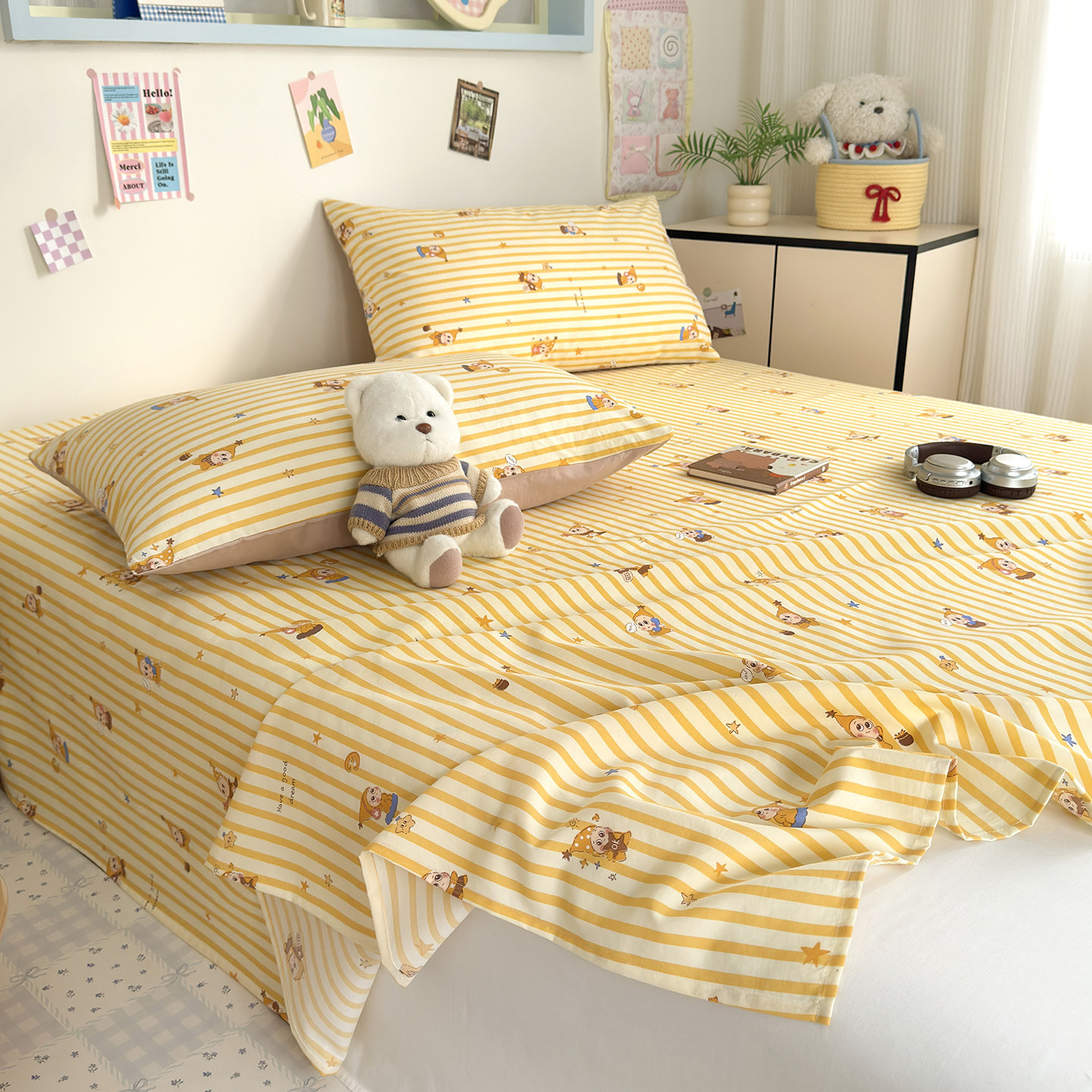 A类纯棉床单单件新款全棉双层纱被单宿舍单人枕套三件套四季通用3