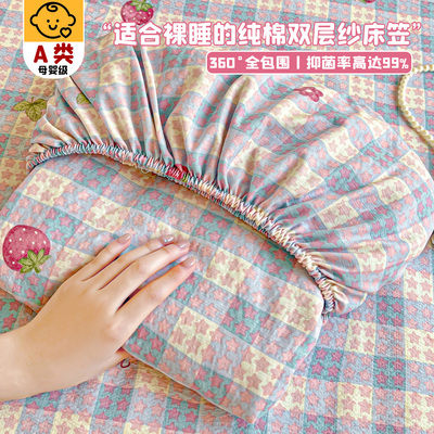 A类双层纱床笠单件纯棉全棉母婴加厚床单套单人宿舍床垫保护床罩3
