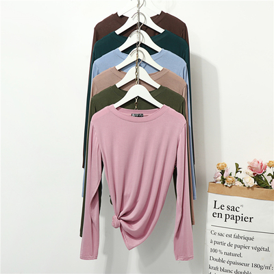 春秋莫代尔打底衫女大码长袖T恤修身内搭秋衣圆领纯色百搭薄上衣