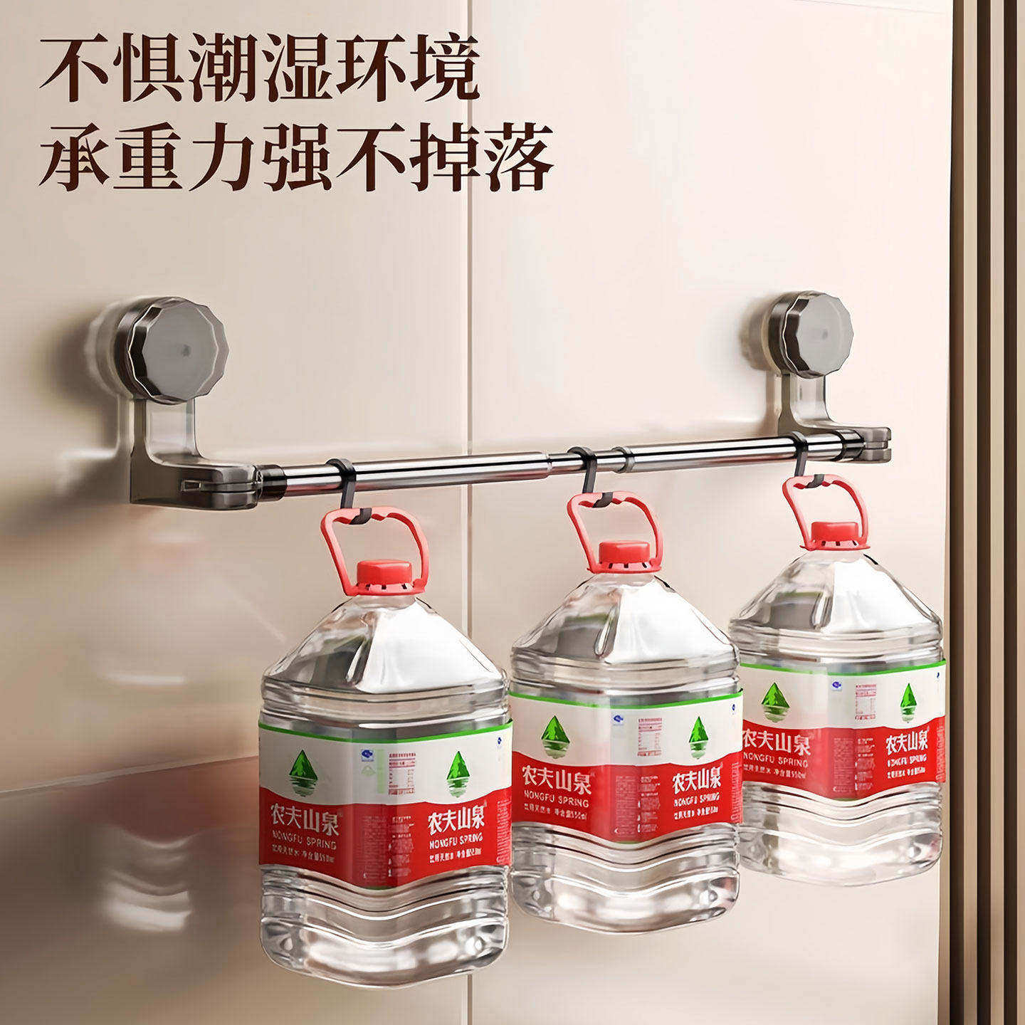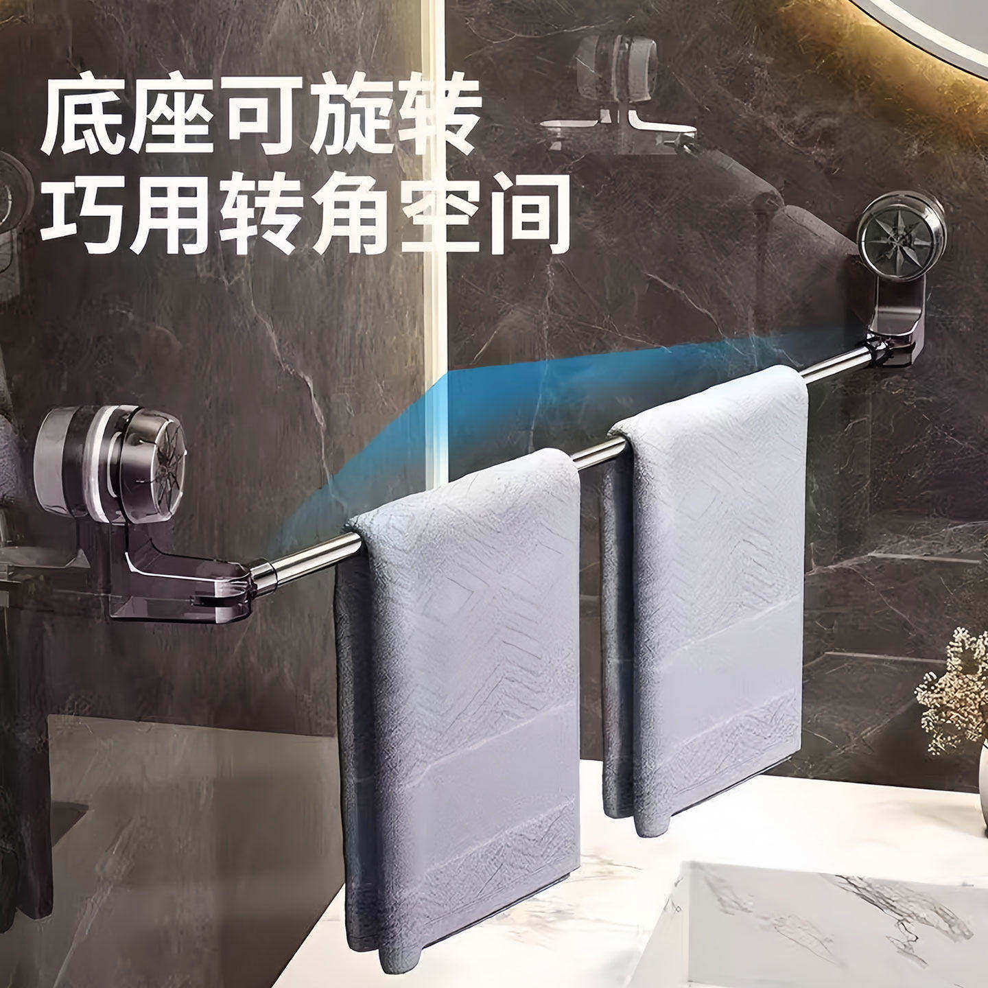 吸盘毛巾架卫生间免打孔浴室伸缩毛巾杆置物架收纳挂架厨房拖鞋架