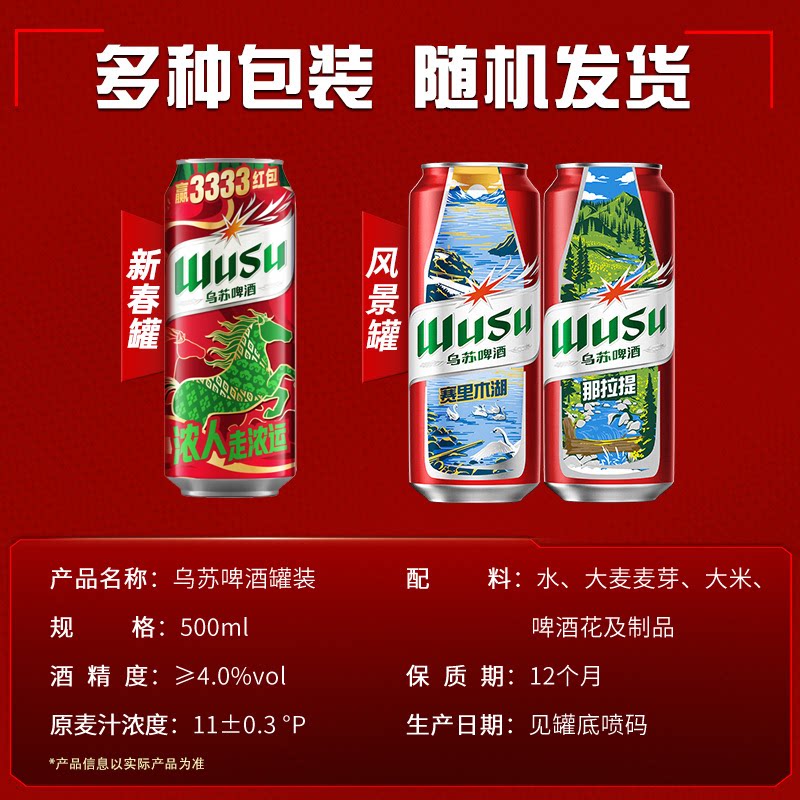 【随机发货】乌苏啤酒风景罐500ml*12罐整箱装日期新鲜麦香浓郁