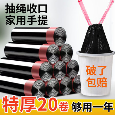抽绳式垃圾袋家用加厚手提式厨房宿舍学生黑色塑料袋提拉自动收口