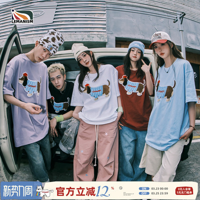 黄子弘凡同款lemanism腊肠狗毛巾绣短袖T恤男夏季300g重磅情侣款